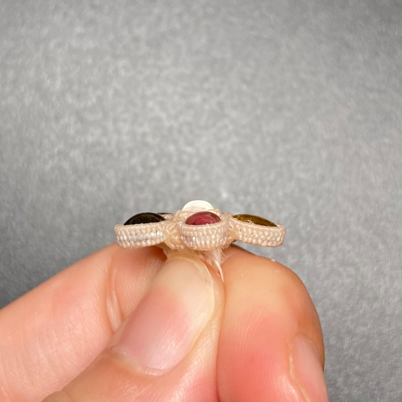 マクラメリング「星のかたちをしたお花」トルマリン×レインボームーンストーン