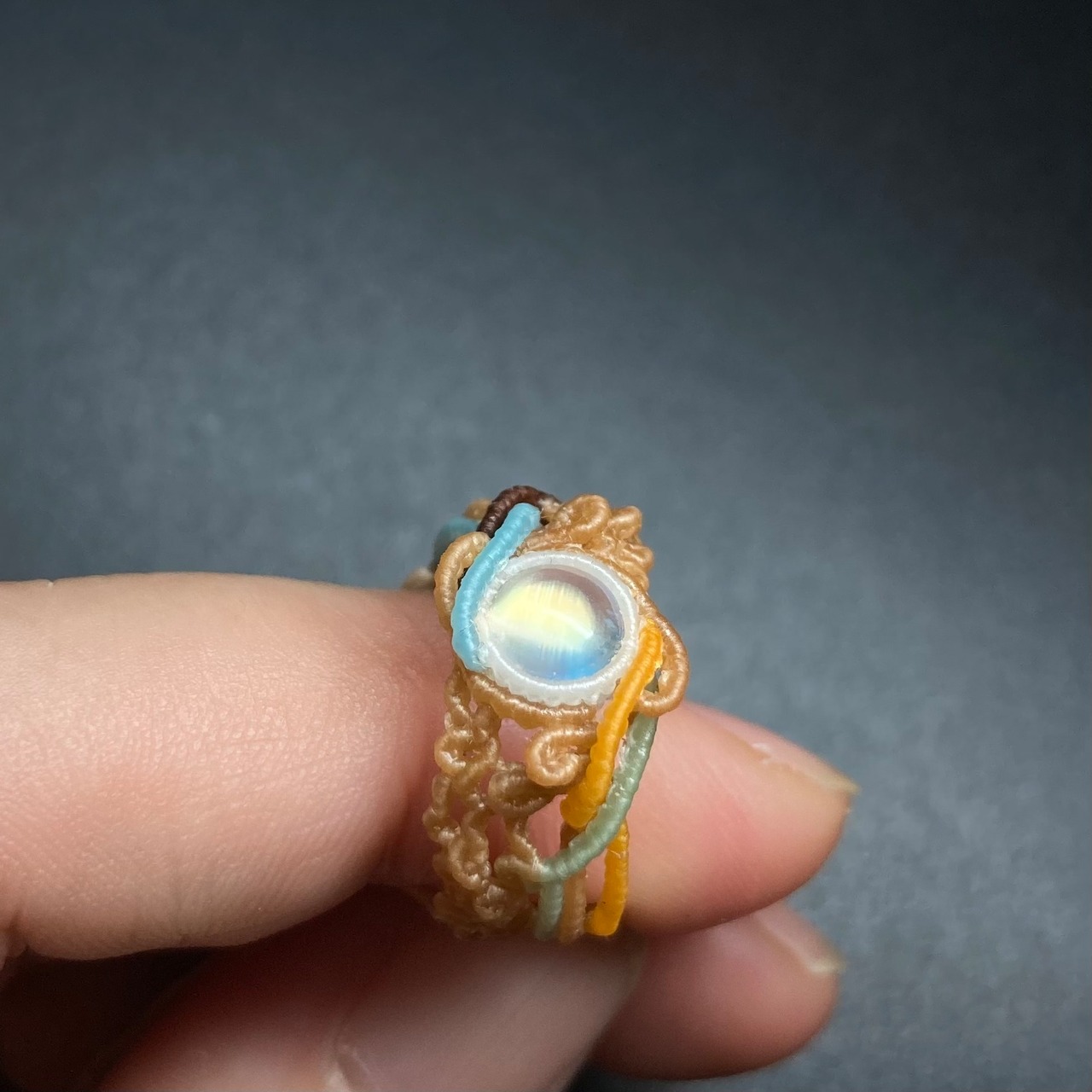 マクラメリング「capriccioso」レインボームーンストーン